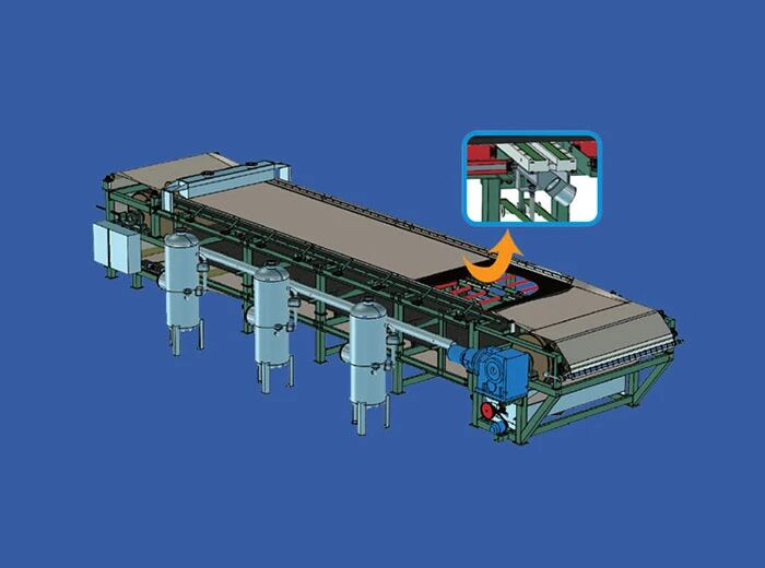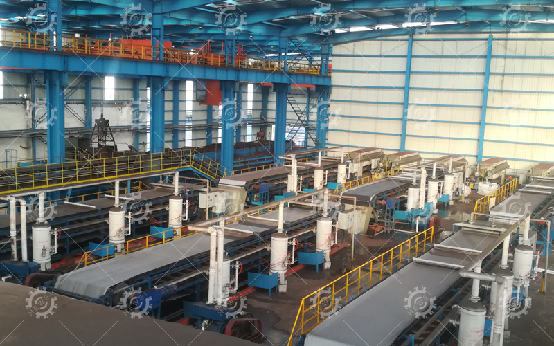 帶式真空過濾機是一種自動化程度較高的新型固液分離設(shè)備,該設(shè)備由機架、真空箱、驅(qū)動輥、壓布輥、糾偏輥、展布輥、料漿分布器、濾布糾偏裝置、濾布再生裝置和傳動裝置、濾布等部件組成,是充分利用物料重力和真空吸力實現(xiàn)固液分離的高效分離設(shè)備。